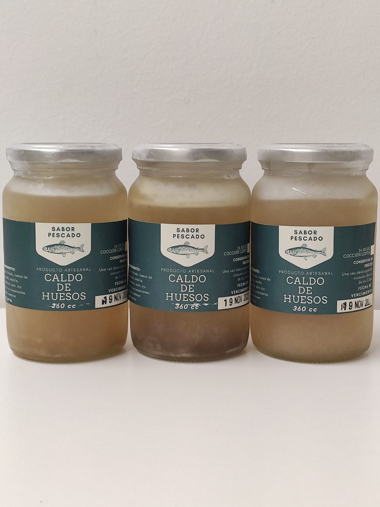 Ingredientes: Huesos de Pescado, agua filtrada, vinagre de manzana, zanahoria, apio, cebolla, ajo