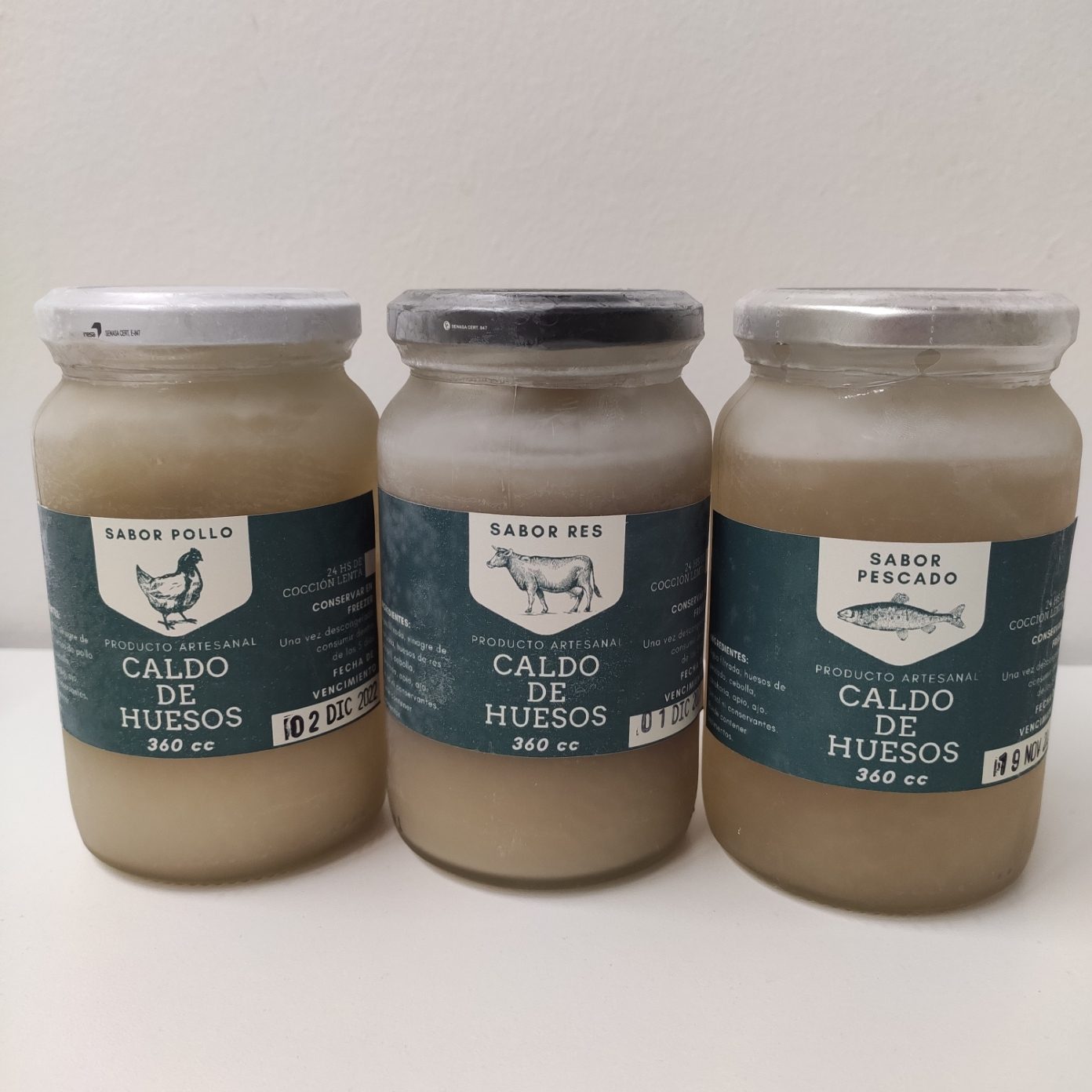 1 Caldo de Huesos de cada sabor Res-Pollo-Pescado 360cc